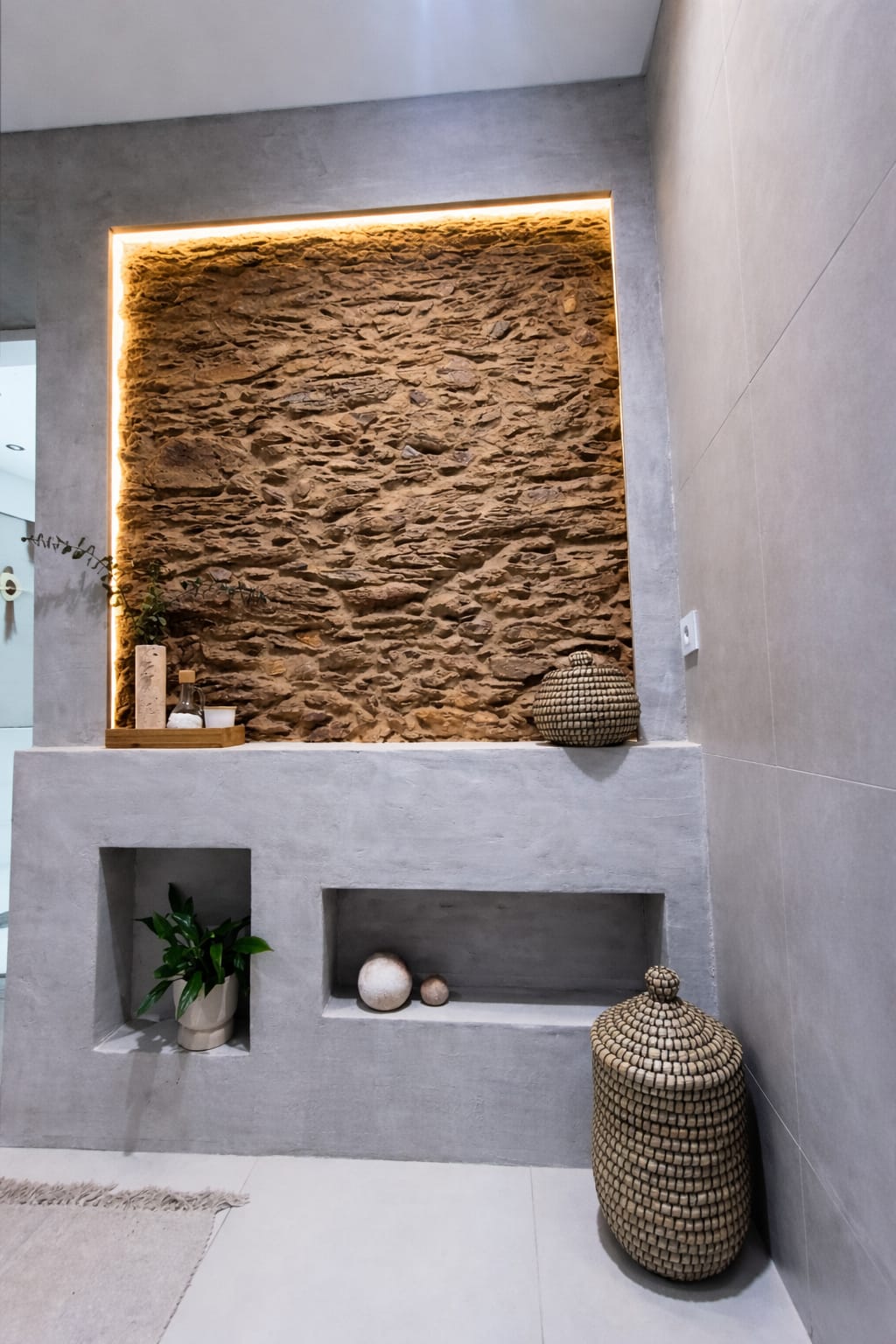 Aplicação de texturas decorativas que transformam paredes simples em superfícies cheias de personalidade. São utilizadas técnicas variadas para criar relevos, efeitos rústicos, sofisticados ou minimalistas, sempre alinhados ao estilo do ambiente.